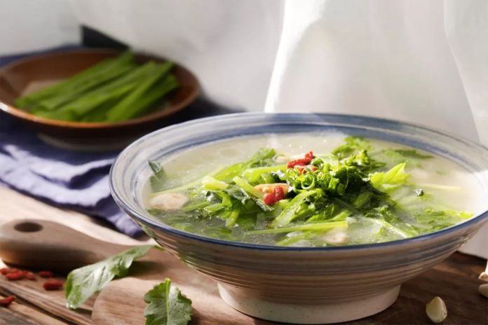 国人用七种新鲜的节令蔬菜,加米粉做成羹,过年大鱼大肉后喝这羹汤,清胃提神,寓意聪明长寿,又具去邪纳祥的期盼。