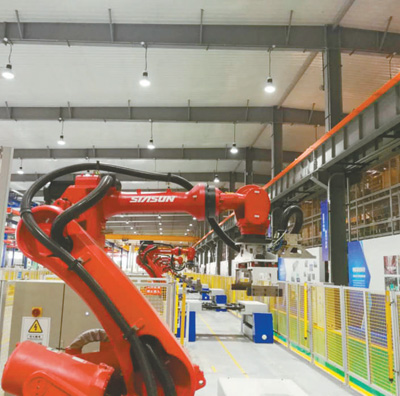 沈阳新松公司智慧工厂机器人全自动生产车间。王晓辉摄