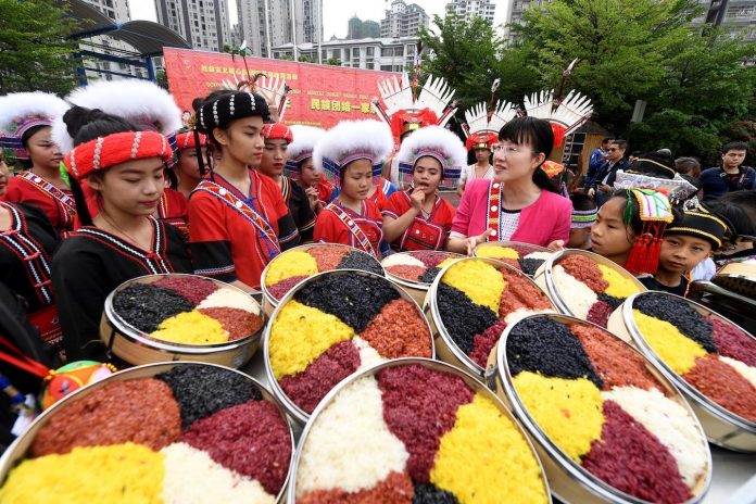 一路风情风俗人情 【圖輯】廣西五色糯米飯 台灣師生熱捧 17 4 月, 2018 圖:廣西南寧市桂雅路小學老師,昨日向台灣小朋友介紹壯鄉特色美食五色糯米飯。(中新社圖片) 桂台各民族歡度「壯族三月三」活動,昨日在廣西南寧市桂雅路小學拉開帷幕,有來自台灣花蓮、台東、宜蘭等地少數民族代表和青年學生參加。 圖:出席活動的台灣花蓮縣化仁中學師生,在品嚐五色糯米飯。 (中新社圖片) 圖:五色糯米飯地道風味。(中新社圖片) 圖:台灣花蓮縣化仁中學的師生,在廣西南寧桂雅路小學表演《阿美人豐年祭》。(中新社圖片) 圖:小朋友學拋綉球。(中新社圖片) 這篇文章 【圖輯】廣西五色糯米飯 台灣師生熱捧 最早出現於 流動新聞。