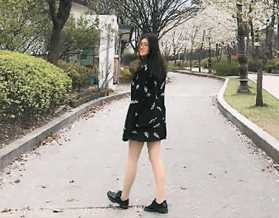 李佳妍就读于韩国檀国大学。她认为留学生在外遭到不公正待遇应慎重利用网络,网络传播具有片面性。图为李佳妍在首尔市永登浦区汝矣岛赏花。
