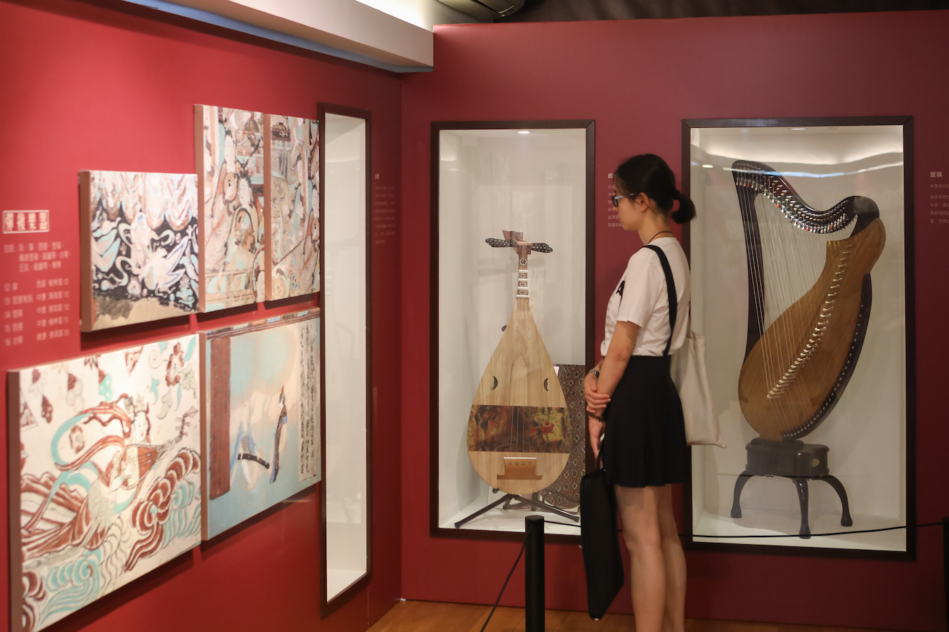 這展覽通過多種形式,展示敦煌石窟的音樂場景壁畫及敦煌樂器,讓觀衆近距離感受敦煌的韵味。