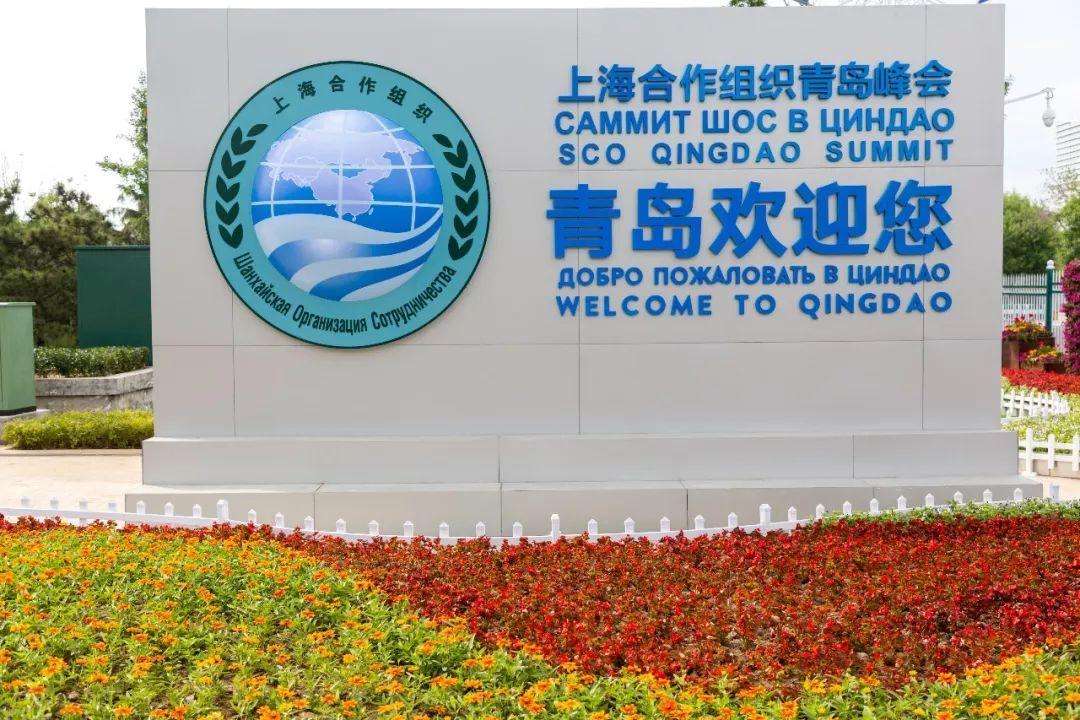 上合组织青岛峰会媒体中心外欢迎标识 (图源:网络)