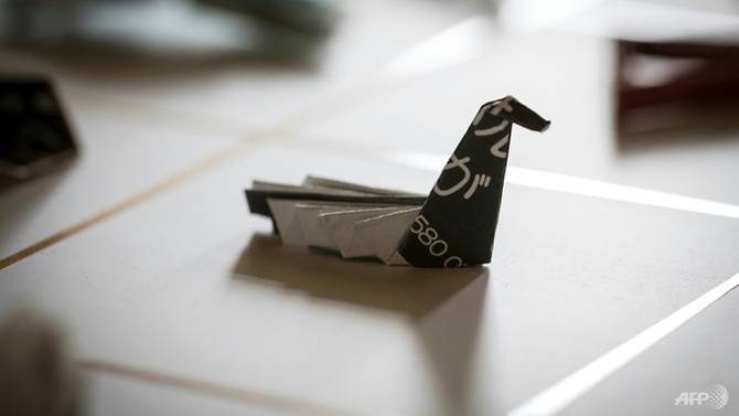 由筷子套制成的折纸鸟 – 由前服务员Yuki Tatsumi AFP / Quentin TYBERGHIEN收集的一部分