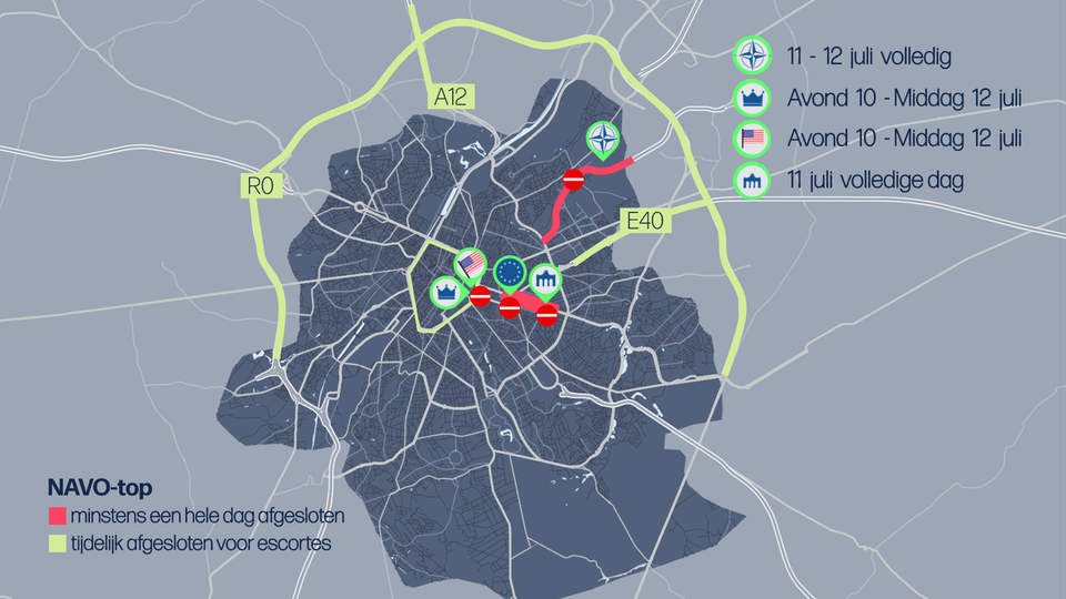 北约会议正在布鲁塞尔举行,这两天,布鲁塞尔交通网络将受到影响。会议召开地位于布鲁塞尔的Evere郊区,部分安全警戒区已经被划分出来,所有机动车辆(包括摩托车在内)都不准在安全警戒区内停泊,违规车辆将被强行拖走。位于环城大道(ring)和Bordet之间的Leopold III-laan也被封闭。美国大使馆、布鲁塞尔皇宫、Jubel公园以及欧盟大楼区附近的道路也被临时封锁。布鲁塞尔城外高速公路E19路口、E40环城道与Reyers, Wetstraat, Belliardstraat, Waterloolaan, Gulden Vlieslaan之间的路段以及城内个别环城大道也会暂时关闭。乘坐公共交通的乘客们也要注意,De Lijn、MIVB公交车及电车都会受到影响。地铁正常运行,但是个别地铁口届时会关闭。警方告诫民众尽量避免在城区出行,并少乘坐公共交通。(赖志航编译)