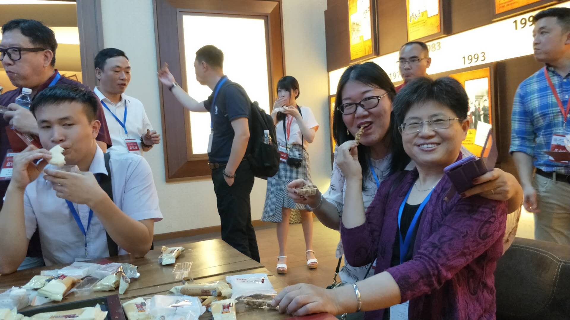 海外华文媒体代表在十八街麻花文化馆内拍照留念。李雪峰摄