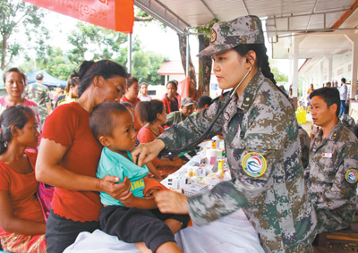 中国医疗队队员在萨南赛县救治灾民。