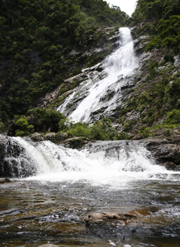 大里瀑布是陵水吊罗山瀑布群里的一帘,最大的落差有三十米,具有两重小瀑布,且四周林木茂密,林间溪流浩浩荡荡地从断崖上跌右而下,其状如水布,声似洪钟,震撼沟谷,气势恢宏,岩石嶙峋环境清幽美好,是极为难得的瀑布景观。