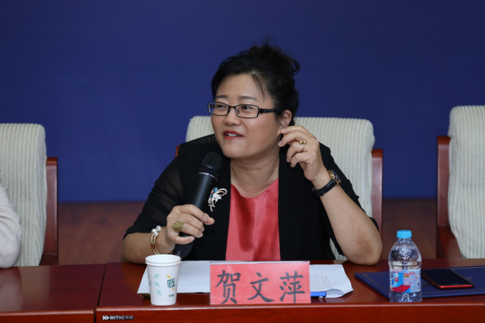贺文萍在“一带一路”与全球合作研讨会上发表主旨演讲。(谢明/摄)