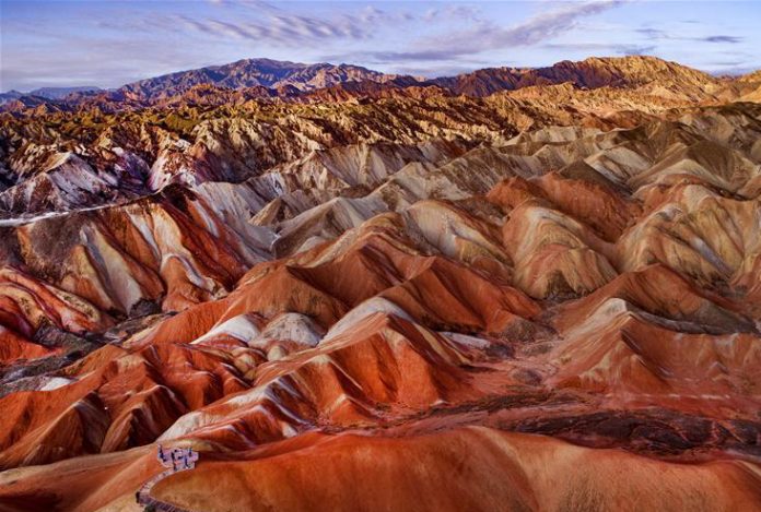 无人机拍摄的张掖丹霞国家地质公园丹霞地貌。(图片来源:新华社 下同)