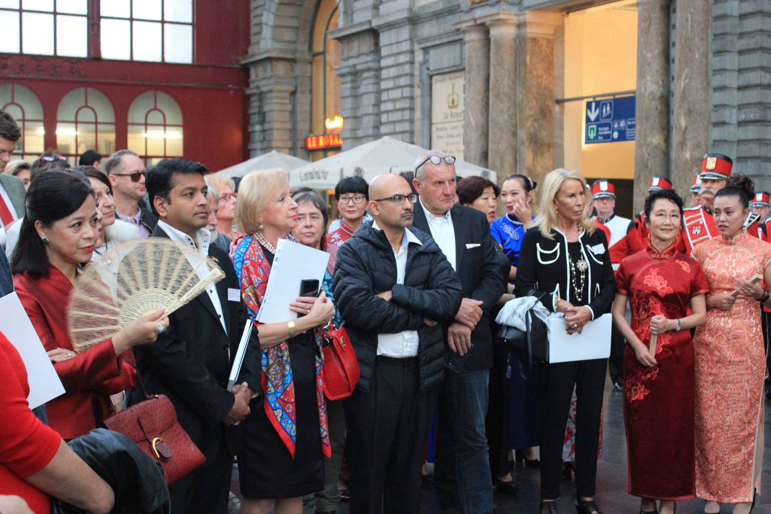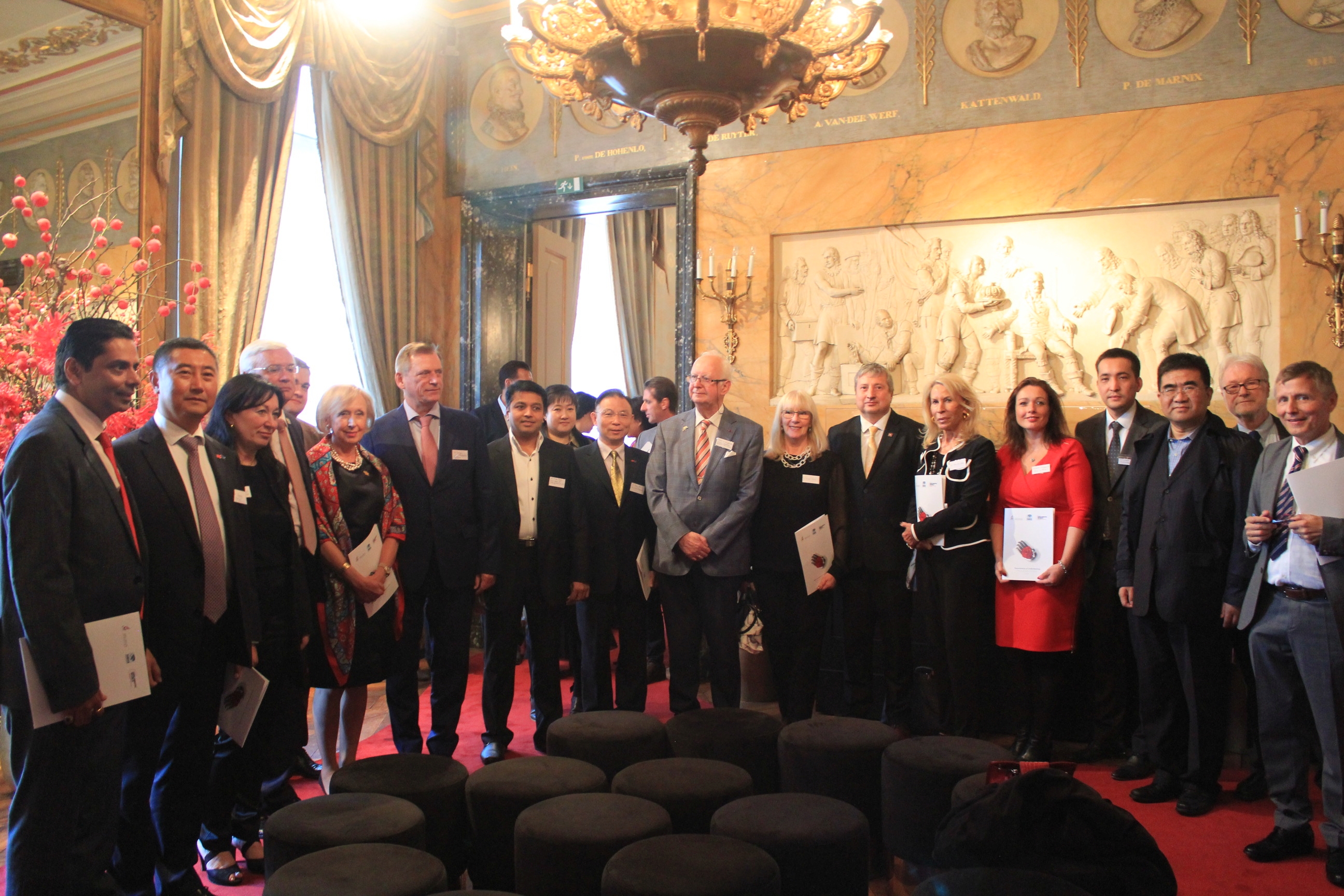 当晚作为活动的支持方安特卫普副市长范锦豪先生,中国驻欧盟使团李建民公参,中国驻比使馆孙伟参赞,同本次活动的策划及主办方世界自由贸易区联盟(FEMOZA)主席Juan Torrents先生、比利时《外交世界》杂志社主编Barbara Dietrich女士,欧洲中国传统文化联合会主席钟植先生,旅比华人联合会主席梁福团先生同各界嘉宾一起出席揭幕仪式。