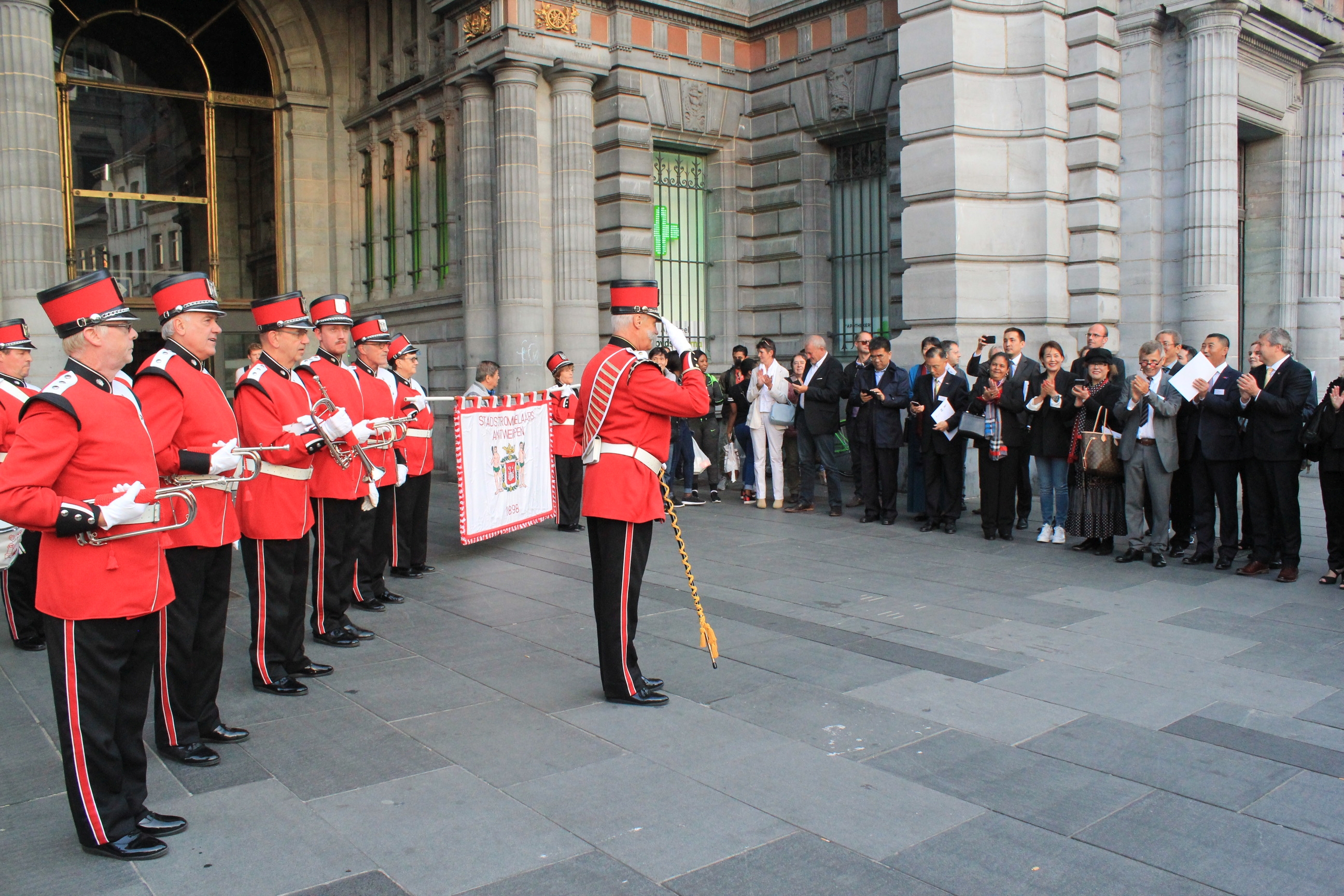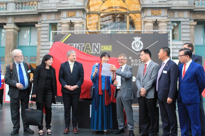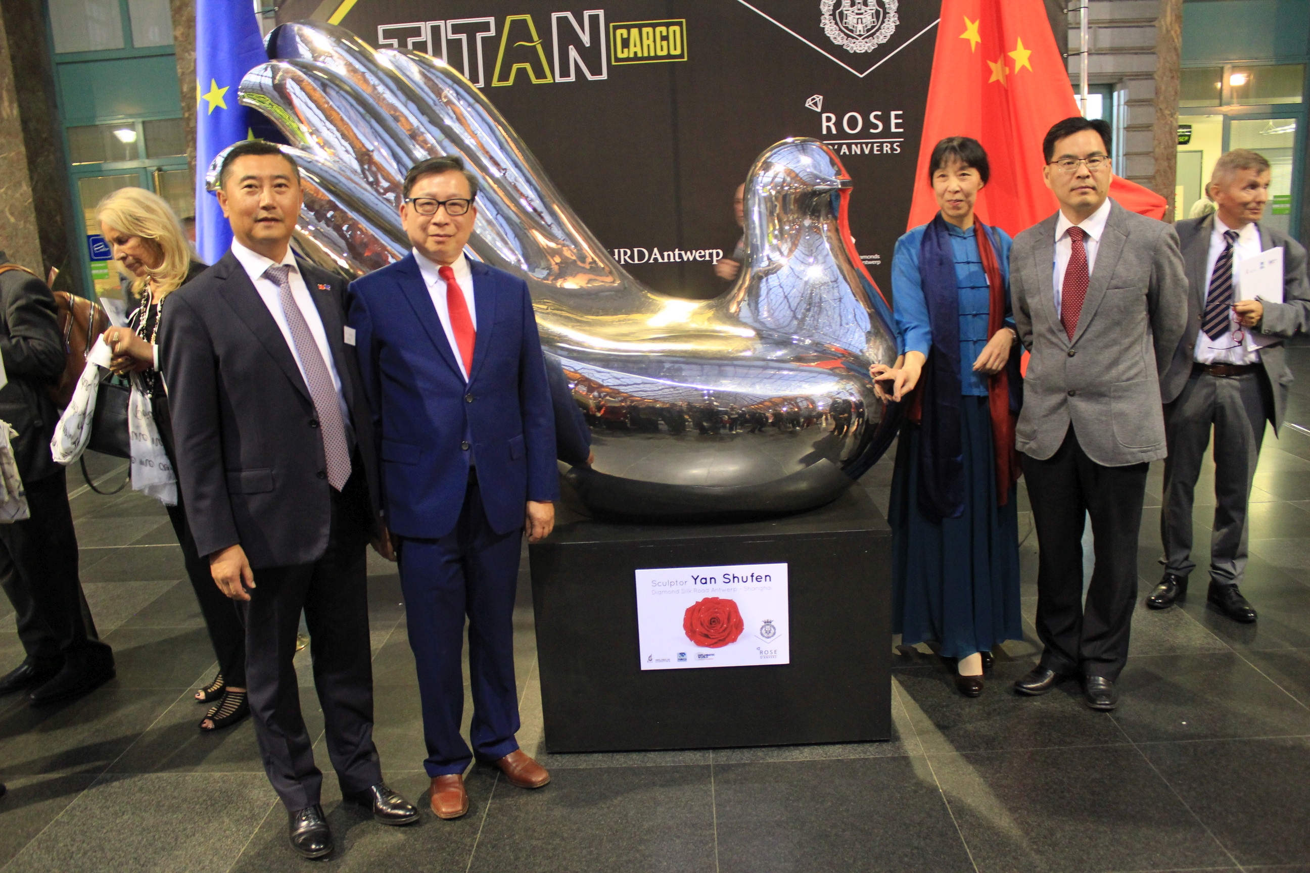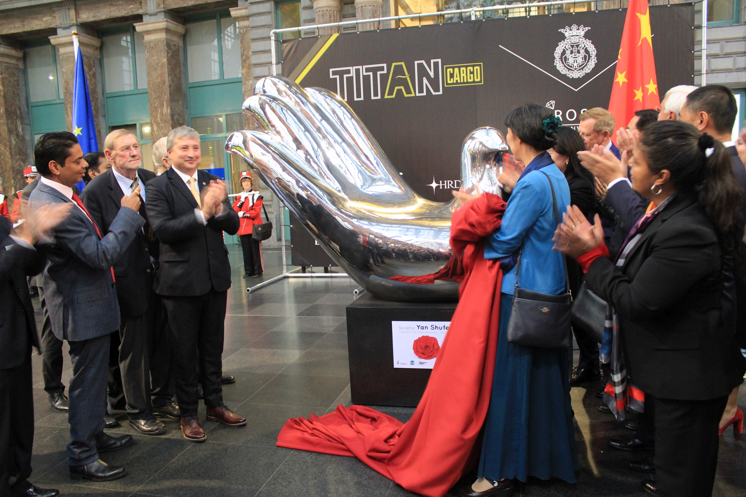 (本平台消息)9月27日,被誉为欧洲最美火车站的比利时安特卫普中心站人声鼎沸,热闹非凡,来自中比各界友好人士同一带一路十几个沿线国家的外交官们一起见证了旅比华人艺术家闫淑芬女士创作的雕塑作品“和平之手”的揭幕展,正式拉开了联通中国上海到欧洲中心安特卫普的客运火车“钻石丝绸”之路的圆梦之旅。