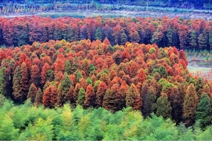 一路风情名胜古迹 江南“喀纳斯”——浙江台州 2 11 月, 2018 在浙江台州临海东塍镇桐坑村,到小芝镇溪下村的一条依山傍水的路上,有大片壮阔的红杉林,直到前些年这里通了公路,人们才发现,原来在江南的深山坳里,还藏着这样一派塞外风光。 台州,私藏了江南最美的秋色。这里其实有三片红树林,分别是:八岭、毛山洋、杨岙。三片红树林之间各隔一座山,可以分别单独进入,也可以串连着走… 每年从11月份开始,这片红杉林就已经开始慢慢变红了,一般极盛期是在11月底12月初。如此一年等一回的美景,怎可辜负?