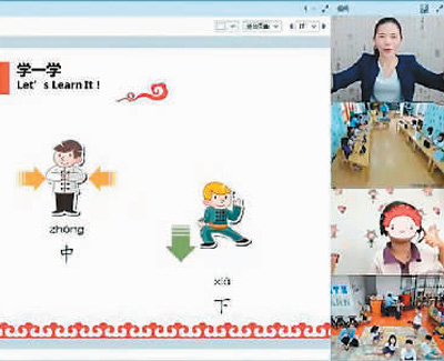 “孩子们对课程非常感兴趣,在摄像头前表现得很活跃,但是刚开始的时候他们并不愿意开口说汉语,更小一点的孩子还在地毯上爬来爬去。”有多年成人对外汉语教学经验的王老师笑着说,“这与成人汉语教学很不一样,对授课老师的课堂组织管理提出了非常高的要求,但是上了几节课之后,孩子们慢慢适应了在线学习,开始积极参与课堂活动,老师对课堂的掌控也更加自如。”