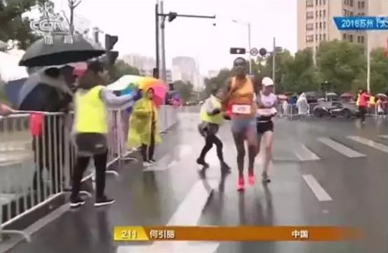 “此时的何引丽已经完成了超过40公里的比赛。”央视解说员正在解说,突然,国旗从何引丽手中滑落下来。