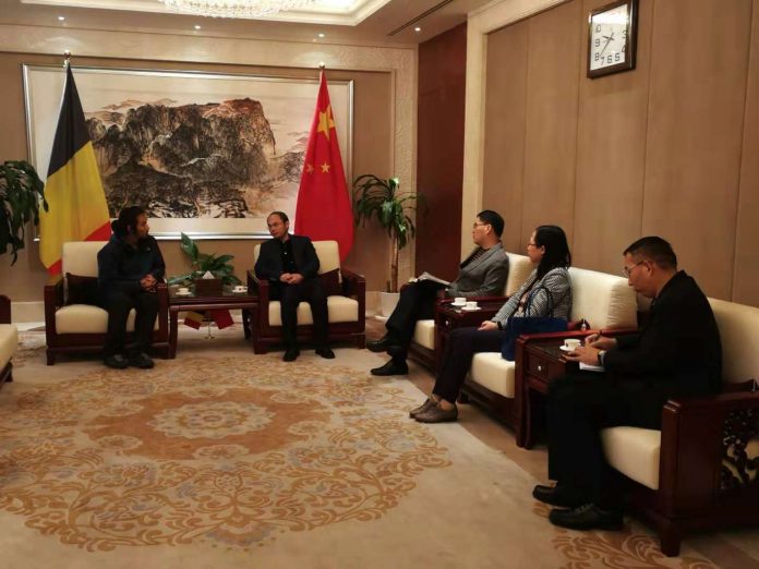 (本平台杨帆图文报道)11月20日,中国驻比利时使馆曹忠明大使特别在馆内接见并慰问在布鲁塞尔丢车的上海小伙陆俊杰。