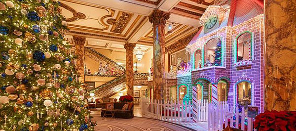 吃姜饼屋是西方一项历史悠久的圣诞节传统。每年这个时候,该酒店都会推出姜饼屋,今年以圣诞老人甜品店为主题,更具特色,而且游客们可在屋内享受美食,这对于人们来说也是一件新鲜事。据悉,这个姜饼屋是用1万多块姜饼砖,1650磅(约748公斤)糖果和3300磅(约1497公斤)皇家糖霜制成的。屋内有很多房间,其中一间看起来就像圣诞老人的厨房,椅子上有圣诞老人的围裙,烤盘里还有姜饼。屋外还有一棵高达7米的圣诞树和一条铁轨。