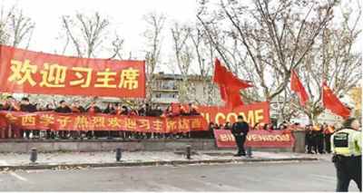 图为西班牙华侨华人热烈欢迎习近平主席访问西班牙。戴华东摄