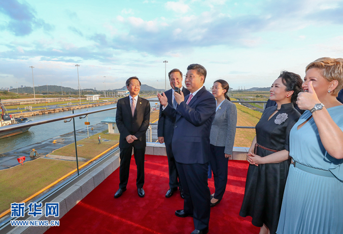 当地时间12月3日,国家主席习近平在巴拿马城同巴拿马总统巴雷拉共同参观巴拿马运河新船闸。(图源:新华网)