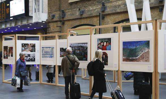 为期七天的图片展在人流密集的伦敦市中心国王十字车站中央大厅举行。国王十字车站为伦敦重要的交通枢纽之一,是著名英国畅销小说《哈利波特》中的剧情场景原型,每日都吸引了大量游客前来参观游览。