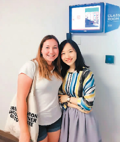 胡启元是一个充满浪漫情怀又不断激励自己进取的姑娘。她坚信,出国留学不是为了“镀金”,更不是盲目崇拜,而是为了能够更好地了解世界。  这是她(右)在法国参加课程时和同学在一起。(照片由作者提供)