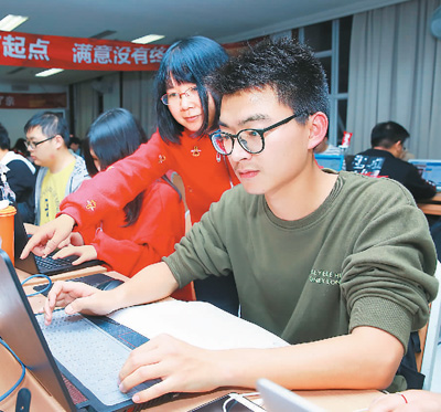图为浙江广厦建设职业技术学院与杭州壹网壹创科技股份有限公司联合开发校企合作项目,该校700余名学子进行线上销售实战训练。胡扬辉摄(人民视觉)