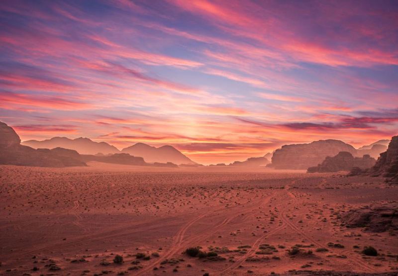 瓦迪拉姆是位于约旦古城亚喀巴北部70公里处的一片沙漠腹地,以巍峨、险峻的奇山和广袤无垠的沙漠美景闻名于世。这里有称霸沙姆地区最高峰的拉姆山,也有充满阿拉伯风情的沙原,正是这奇山与沙漠的奇妙结合,令瓦迪拉姆成为拍摄火星场景的最佳场所。日落时分,当余晖洒遍整个沙漠,绚丽的玫瑰色染红山谷时,整个瓦迪拉姆摇身一变宛如一颗红色星球表面,陌生而美丽,散发着令人窒息的神秘气息。