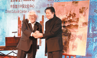 图为2018年6月29日,中欧艺术联展在布鲁塞尔开幕。潘革平摄(来源:新华社)