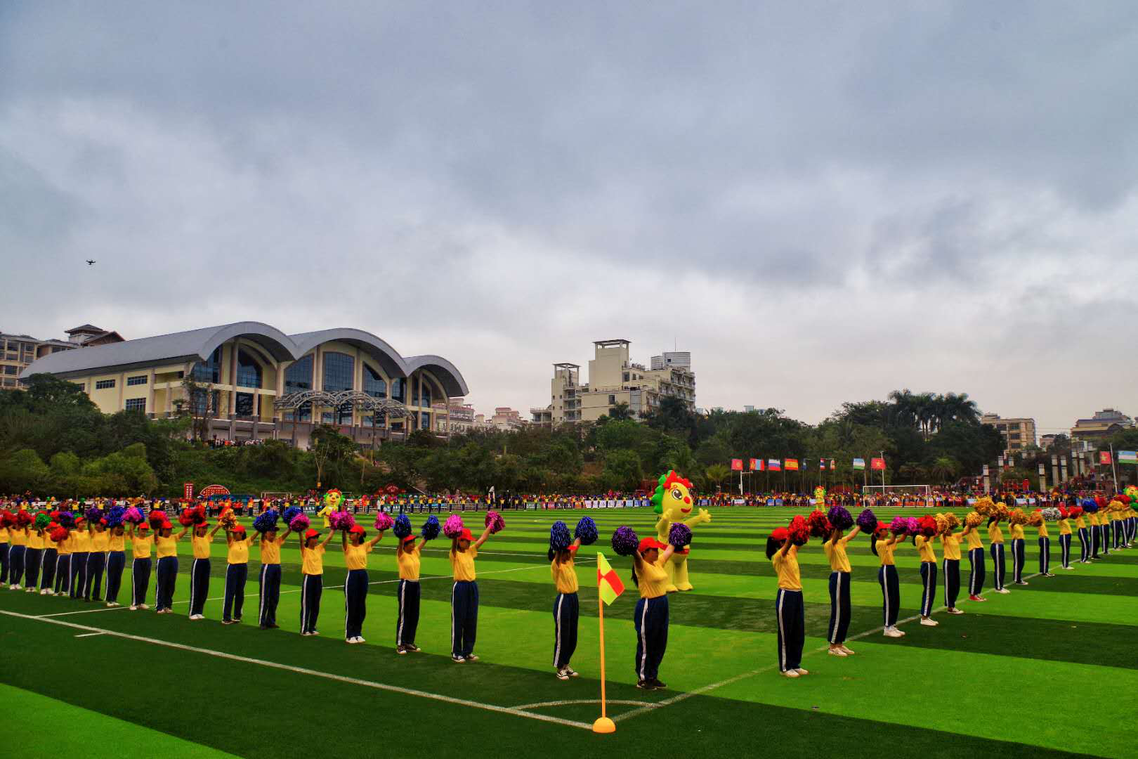 裁判员与运动员方队先后入场。“足球王国”巴西的两支球队入场时,现场观众呐喊欢呼,期待他们的精彩表现;蒙古队身着传统服装在马头琴和悠扬的呼麦声中豪情入场;唯一一支来自非洲的乌干达队,洋溢着阳光和自由,身穿草裙等传统服饰,打着鼓、舞入球场;各个国家服装各异,头戴黄白相间帽子的瑞典队和戴传统Kolpok帽子的吉尔吉斯斯坦队,十分引人瞩目。最后入场的是东道主中国队——广州富力队和琼中足球队两支球队,全场沸腾,热烈欢呼。