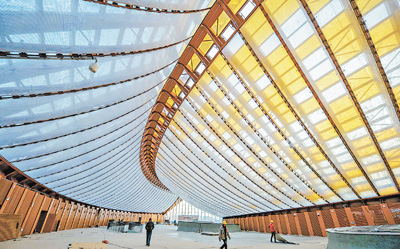 正在建设中的中国馆内景。本报记者 贺勇 摄