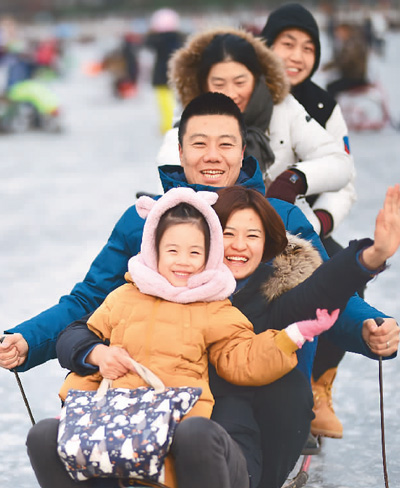游客在北京什刹海冰场快乐嬉戏 祝振强摄(人民视觉)