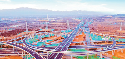 从高空俯瞰京礼高速营城子立交,四通八达、层层交叠(1月22日摄)。本报记者 贺勇 摄