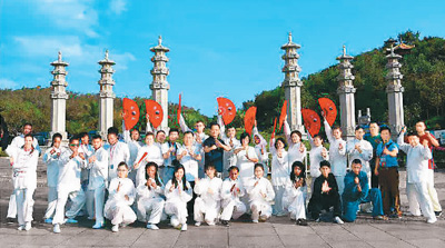2017年,周庆杰教授在海南省三亚市南山参加第二届世界太极文化节。(资料图片)