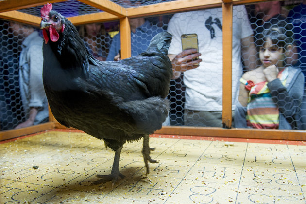 是的,你没看错。每个周日在小长角牛酒吧(Little Longhorn Saloon)都可以看到人们在纷纷下注,赌接下来的鸡粪将落在哪个区域!