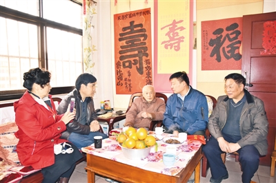 图为1月18日,中国侨联基层工作部部长黄晖(右二)赴昆明看望云南“南侨机工”罗开瑚(右三)。 (图片由受访者徐庆华提供)