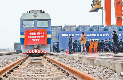 海聚推荐 中欧班列(郑州)开通首条跨境电商专线 4 3 月, 2019 列车停靠在中铁联集郑州中心站等候发车。 列车驶出中铁联集郑州中心站。 3月2日,随着“菜鸟号”从中铁联集郑州中心站驶出,中欧班列(郑州)首条跨境电商专线正式开通,这条专线将由郑州驶向比利时列日。 新华社记者 李安 摄 《人民日报》(2019年03月04日03版)