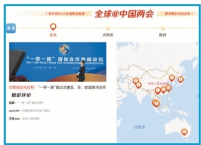 “全球@中国两会”栏目是海外网和海客新闻客户端“两会专题”栏目。栏目用地图定位的方式展示全球媒体和网友关心的中国两会话题,并集纳编译国际舆论观点与网友互动。两会话题在海外的反响,可以一“幕”了然。海外网与海客新闻客户端同步,发布全球媒体对中国两会的互动文章,并搜集网友精彩评论,进行实时更新。目前,相关账号已发布两会相关“图文+视频”内容61条,内容为彭博社、路透社、今日俄罗斯、联合早报等海外权威媒体及网友对两会的积极反响,增加了交互性和内容的丰富性。相关内容均引发网友互动并积极留言。例如,在海客号“知道港澳台”发布的香港《大公报》关于粤港澳大湾区内容,海客新闻网友可以点击位置“香港”阅读,@sprmrkt读后评论道:“大湾区是香港的新舞台,香港与深圳,是粤港澳大湾区发展过程中的不二伙伴。”敬请扫码阅读更多精彩报道。