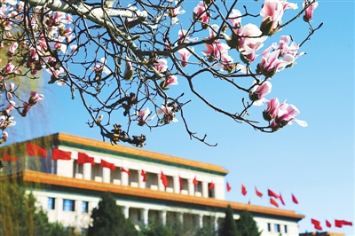 海聚推荐 早春迎盛会 8 3 月, 2019 北京风和日丽,在春风的吹拂下,长安街新华门附近的玉兰花竞相绽放,在蓝天和红墙的映衬下格外美丽。 郭俊锋 摄 春暖花开时节,三峡库区沿长江两岸的山花、油菜花竞相开放,碧绿的江水、飘香的花朵以及雄伟的三峡构成美丽的春天图画。 郑家裕 摄 《人民日报海外版》(2019年03月08日第12版)