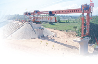 2018年12月2日,中老铁路首片简支T梁在老挝首都万象市成功架设,标志着中老铁路建设工作由线下施工转为线上施工。 本报记者 赵益普 摄