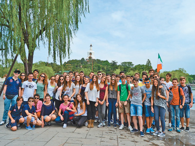 罗马国立住读学校学生来华参加夏令营活动,在北海公园合影留念。