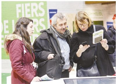 在近日举行的法国国际农业展上,一家合作社的工作人员正在通过扫描产品条形码,向观众介绍其农产品的可追溯性。本报记者 龚鸣 摄