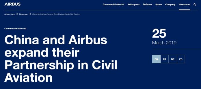 空客发布声明:“中国与空客扩大民航合作伙伴关系”
