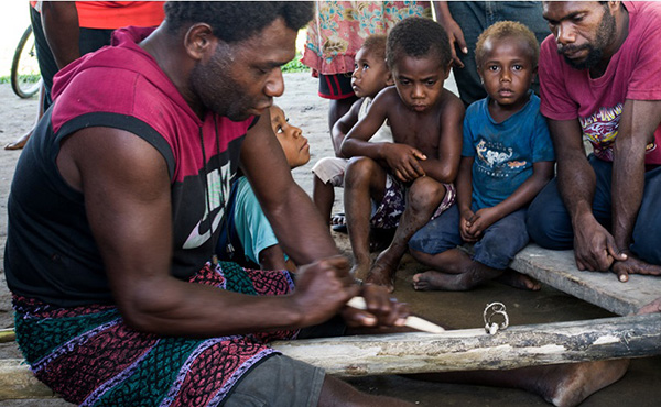 尽管如此,我仍觉得有必要记录下这些原生态的知识,并将之融入到现代生活之中,让它们重获生命、继续发挥作用。如今,对火犁的依赖程度、正如对其他生火技术的依赖程度一样,各地差别很大。在俾斯麦群岛那些更偏远的地区里,仍有许多人需要火犁的帮助,邻近的新爱尔兰岛距离拉包尔不过六十来公里,但我在那里遇见的少年人都精于此道,直到今天,火犁也仍是大多数人日常生活的一部分。在其他一些地区,当火柴和打火机不在场时,人们也会借用一下火犁。虽然火犁早已失去了实际的功用,但它仍在代际间传递,一如分享食物和情感交流的方式,生火的能力亦是他们文化传承系统里的关键一环。