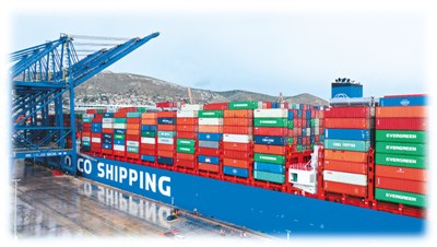 中国超大型集装箱货轮“中远海运双鱼座”在经过近一个月的航行后,于2月15日抵达欧洲,停靠希腊比雷埃夫斯港。新华社记者 吴鲁 摄