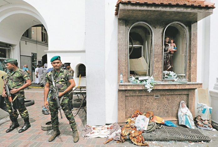 案发后,当地军人在圣安东尼教堂外警戒。(图:路透)