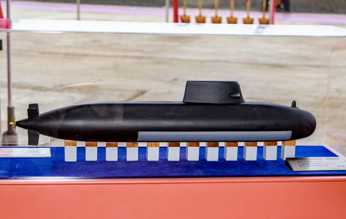 台媒称,模型显示,该潜艇的舰尾出现了“X型舵翼”,舰首与“剑龙级”潜艇相当类似,也采用泪滴型设计,外型则明显圆长肥厚。台专家称,这个构型和德国的212型潜艇相当类似,尤其是尾舵和“俥叶”几乎一模一样。