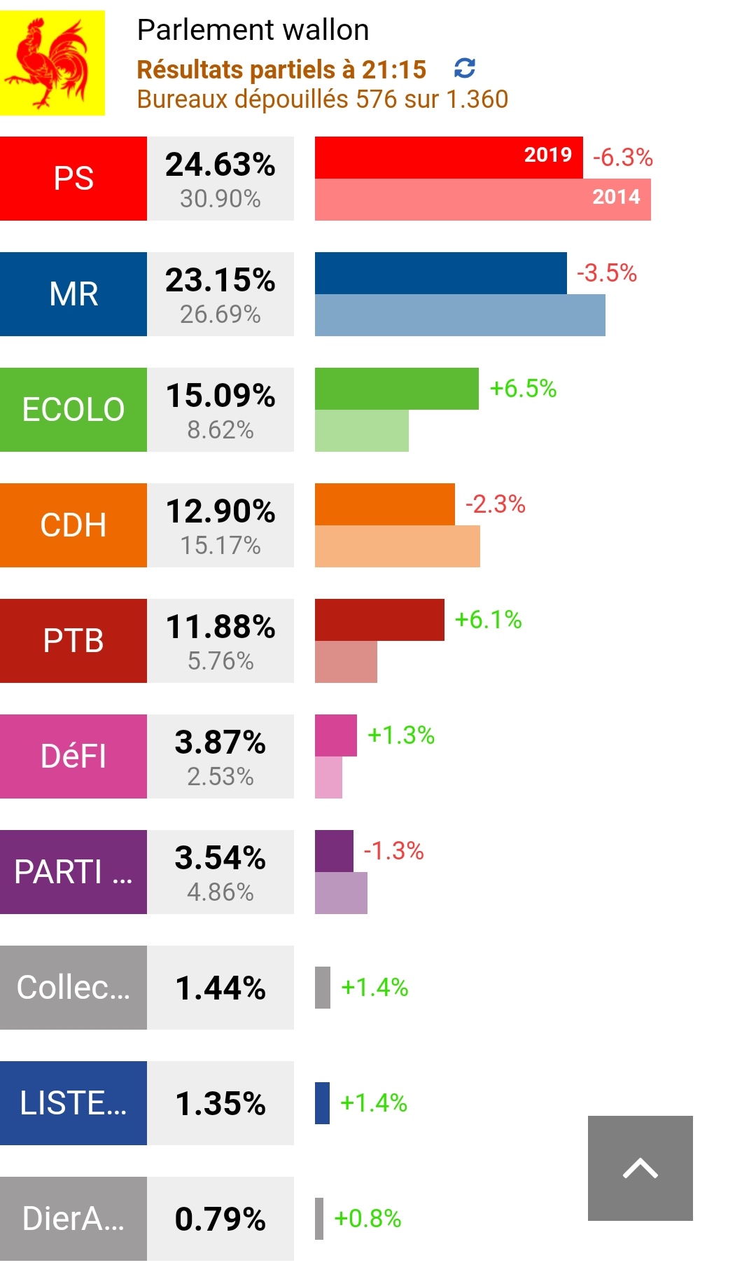 瓦隆大区议会的选举初步结果,社会党仍然领先。