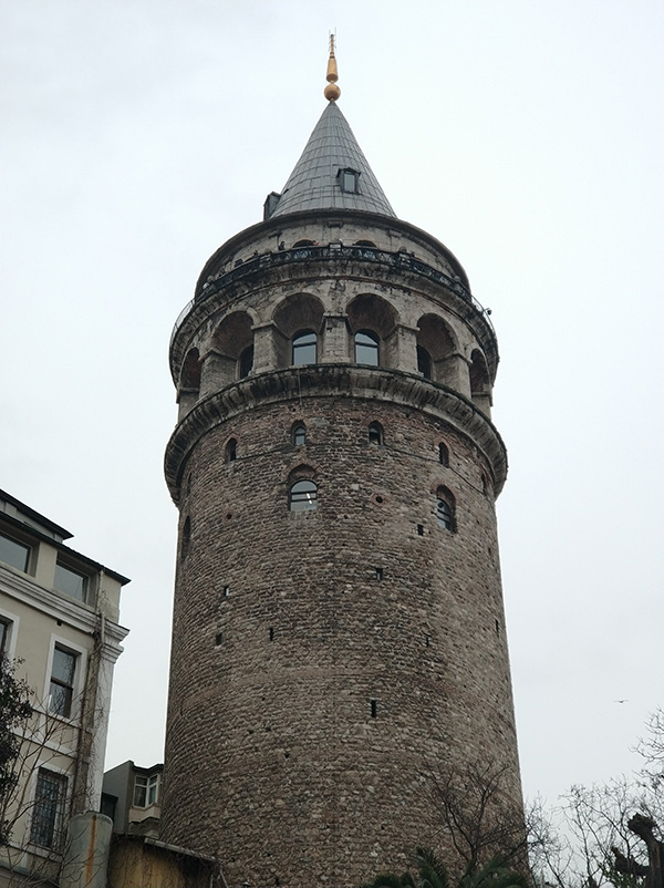 今天的加拉塔地区属于伊斯坦布尔市一部分,但最初是一个独立的城市,是热那亚人的殖民地。我在前文提到参与第四次十字军东征洗劫君士坦丁堡的就有威尼斯人,而热那亚人则站在了拜占庭帝国一边。热那亚人与拜占庭达成了协议,帮助米海尔八世夺回君士坦丁堡,而热那亚人获得了贸易殖民地,并修筑围墙和其他建筑。加拉达塔就是这个时期(1348年)修建的,当时是君士坦丁堡最高的建筑物,是环绕加拉塔热那亚城堡防御工事的顶点。