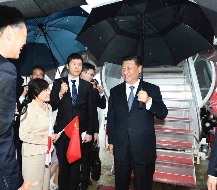 6月27日,中国国家主席习近平抵达日本。(图源:新华社)