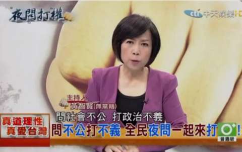 “问社会不公,打政治不义。”这是台湾中天电视台“夜问打权”节目的开头语。节目开办以来,主持人黄智贤和嘉宾们主张两岸统一,介绍大陆发展,批评台当局不公不义的行为,深受两岸观众的喜爱。