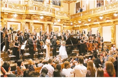 当最后一个音符响彻在舞台上时,现场气氛骤然沸腾,持续不断雷鸣般的掌声和“Bravo”不绝于耳——7月12日晚,4位来自世界知名音乐学府的华人新锐钢琴家在奥地利维也纳金色大厅举办音乐会,演奏了《贝多芬第五钢琴协奏曲“皇帝”》《肖邦第二钢琴协奏曲》《柴可夫斯基第一钢琴协奏曲》和《拉赫玛尼诺夫第二钢琴协奏曲》4部作品,音乐之声深深打动了古典音乐之乡的观众。